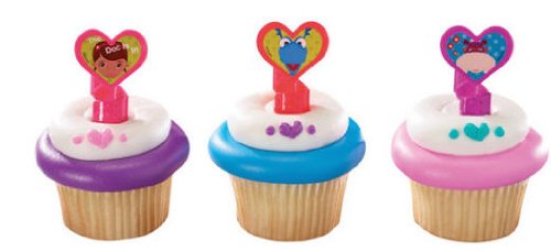 - 16 Doc Mcstuffins Doc and Friends Cupcake Decoration Rings with Matching Colored Baking Cups