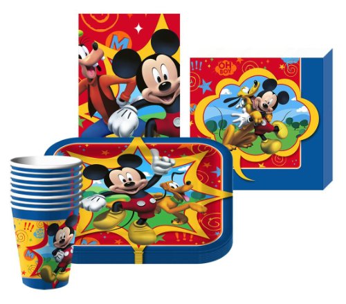 Includes: (1) Mickey Fun & Friends Tablecover (8) Mickey Fun & Friends 9oz. Cups, (8) Mickey Fun & Friends Shaped Dessert Plates, (16) Mickey Fun & Friends Beverage Napkins