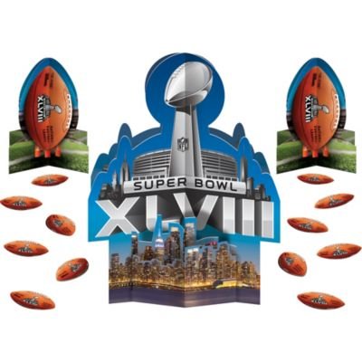 - Get your Super Bowl party ready for some football! Our Super Bowl Table Decorating Kit features a pop-out cardstock centerpiece with the Super Bowl XLVIII logo and cutouts of the New York skyline. Complement the centerpiece with two smaller football centerpieces and matching football table scatter. Place all the Super Bowl Table Decorations on a table or countertop to get your guests pumped up for the big game!